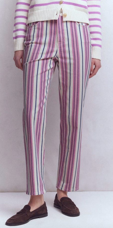 Boden has a great array of striped jeans, which feature a high-rise shape and straight-leg.