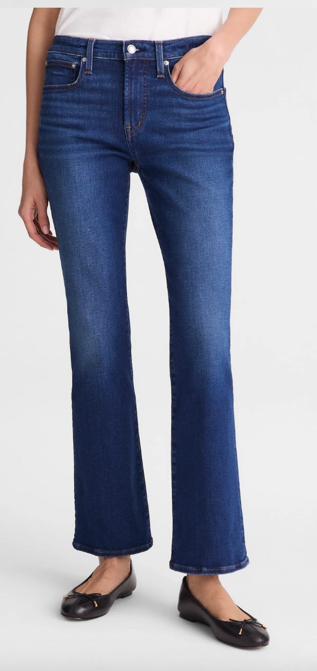 And we love a kicky crop jean to expose those ankles after a long winter. The Flare Crop Jean in Super Soft Denim from Madewell has been a FabList favorite for years. Fitted through the hips and thighs, these mid-rise jeans feature a flattering, kicked-out, cropped flare.