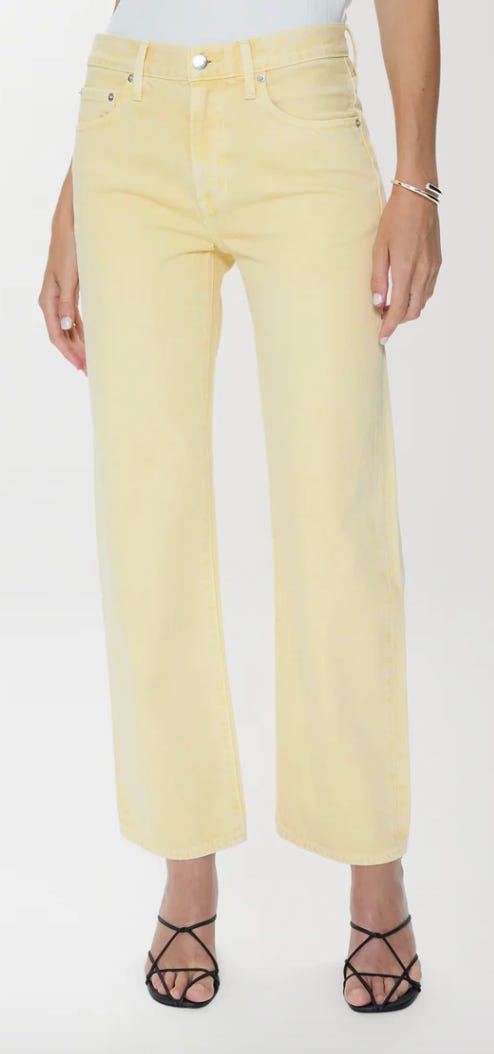We love Pistola jeans, and these in yellow scream spring! The Lexi has a straight leg with a mid-rise waist, a sculpted bowed leg, and a soft curve at the knee.