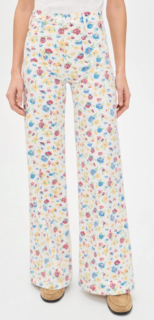 Mother is famous for its Hustler jean, and this one in a flower print is definitely fun. It’s made from stretch denim and features a high-rise, zip fly, patch pockets, and a clean hem.